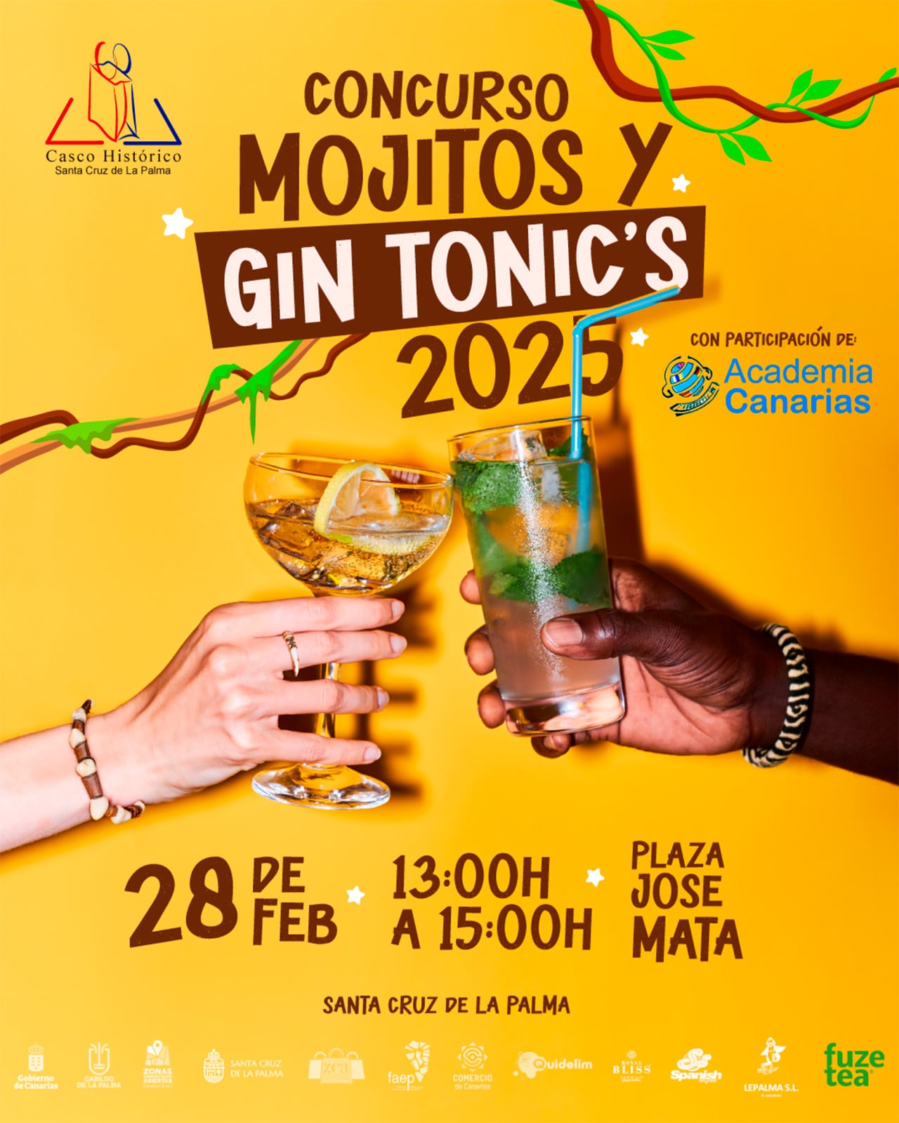 El Concurso de Cócteles 2025 está organizado por la Asociación de Empresarios Casco Histórico de Santa Cruz de La Palma y el Ayuntamiento de Santa Cruz de La Palma, con la colaboración de: Academia Canarias, Fuzete, Hielos Lepalma, Quidelim, Royal Bliss, Spanish Styles, la Federación de Asociaciones de Empresarios de La Palma (FAEP), el Área de Comercio del Cabildo Insular de La Palma y la Dirección General de Comercio del Gobierno de Canarias.